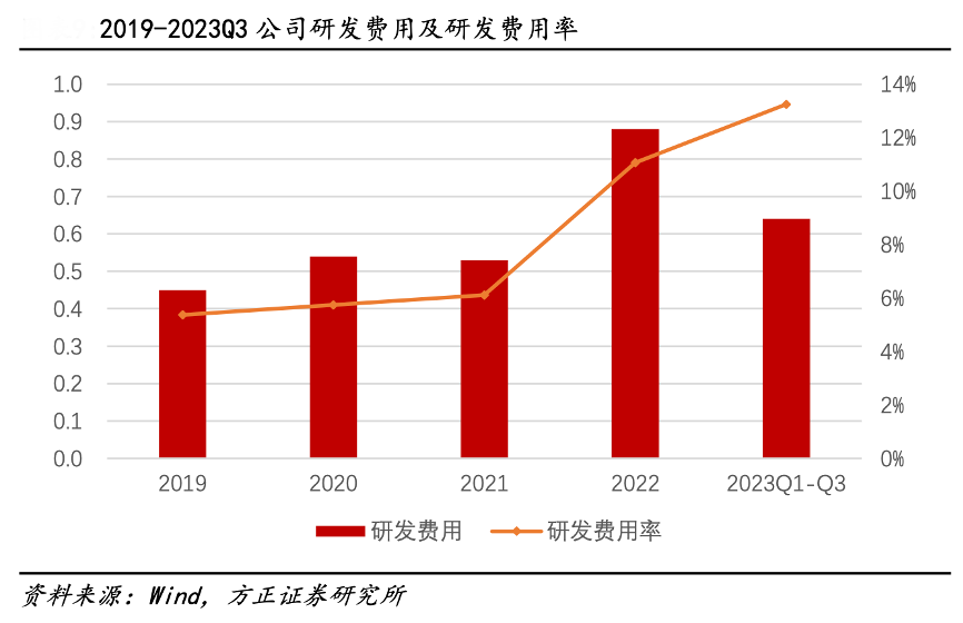 經典案例:根據wind、方正證券研究所等綜合資訊表明,安聯銳視持續加大研發投入,不斷豐富產品品類。2023前三季度,公司的研發費用為 0.64 億元,研發費用率達到了 13.25%,同比提升了 3.22 個百分點。在安防逐漸轉向 智能化、網聯化、高清化的背景下,2023 年前三季度,公司針對專業安防產品線 公司研發了 4 路 4K 智能全景攝像機。