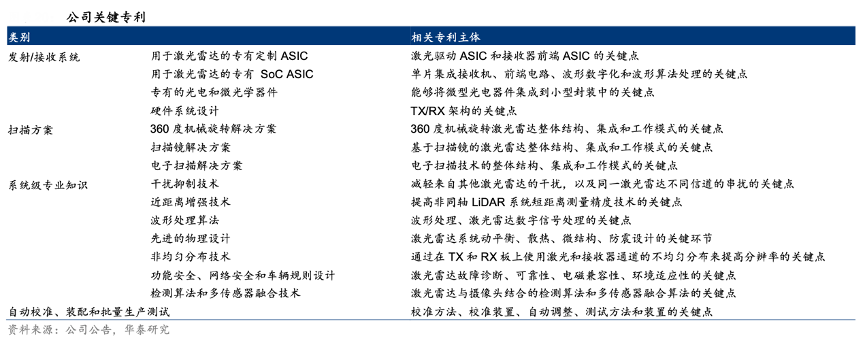 經典案例:根據公司公告、華泰研究等綜合資訊表明,強大的研發和自主設計能力造就禾賽出色激光雷達和ASIC。禾賽的研發團隊包括禾賽研究院、 ASIC 中心,以及研發中心,截至 2022 年 12 月 31 日,禾賽共有員工1,010 人, 其中研發團隊占 52%,博士學歷 74 人。TX/RX 系統的關鍵知識產權、掃描機制、系統級專有技術等均為激光雷達設計和 ASIC 升級提供強有力支撐。