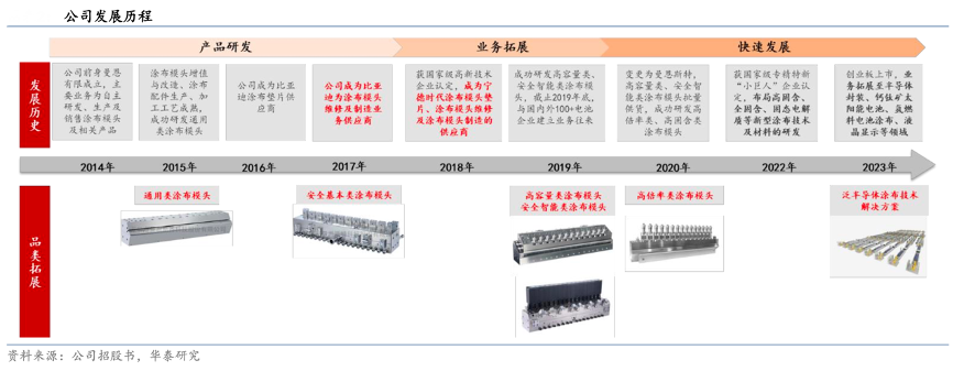 經(jīng)典案例:根據(jù)公司招股書、華泰研究等綜合資訊表明,曼恩斯特公司深耕高精密狹縫式涂布模頭,實(shí)現(xiàn)核心產(chǎn)品的更新迭代,獲得下游電池客戶的認(rèn)證,并拓展了涂布設(shè)備、涂布配件等業(yè)務(wù),從零部件供應(yīng)商轉(zhuǎn)型為涂布整體方案服務(wù)商,并實(shí)現(xiàn)了涂布工藝在泛半導(dǎo)體與燃料電池等領(lǐng)域的技術(shù)突破。