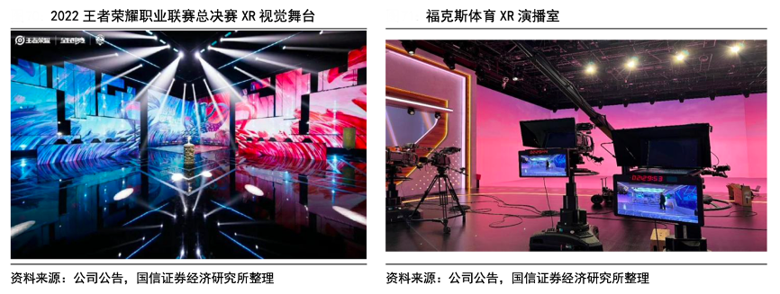 經(jīng)典案例:根據(jù)公司公告、國信證券經(jīng)濟研究所等綜合資訊表明,洲明科技公司在電子競技、體育直播等行業(yè)深度布局 XR 虛擬業(yè)務(wù),營造沉浸式觀感體驗。例如,雷迪奧為 2022 王者榮耀職業(yè)聯(lián)賽總決賽定制超科幻 XR 視覺舞臺,融合 5G 數(shù)據(jù)傳輸技術(shù),帶給觀眾沉浸式觀賽體驗。又如,雷迪奧與福克斯體育合作建造洛杉磯首個大型 XR 演播室,構(gòu)建成全新 XR 直播平臺,帶給觀眾超強沉浸式賽事體驗。