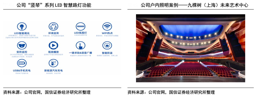 經(jīng)典案例:根據(jù)公司官網(wǎng)、國信證券經(jīng)濟研究所等綜合資訊表明,洲明科技公司智能照明業(yè)務(wù)主要包括戶外照明和戶內(nèi)照明兩大板塊。戶外照明方面,公司 于 2015 年在行業(yè)內(nèi)率先開啟多功能智慧桿的研發(fā)與應(yīng)用,現(xiàn)已成為5G 建設(shè)浪潮下的關(guān)鍵應(yīng)用;戶內(nèi)照明方面,公司深度布局高端建筑照明及燈光設(shè)計領(lǐng)域,為星級酒店、高端寫字樓、美術(shù)館、博物館等室內(nèi)高端頂級品牌的商業(yè)空間提供專業(yè)照明解決方案與技術(shù)支持。
