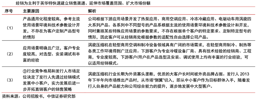 經典案例:根據公司招股書、中信證券研究部等綜合資訊表明,英華特通過參加經銷商產品推介與技術交流會、與經銷商工程師對接溝通等方式,與終端客戶保持緊密聯系,加深對行業(yè)需求理解,及時感知行業(yè)變化趨勢,適時進行技術升級,開展前瞻性研發(fā)。截至 2022 年年底,公司已 在全國發(fā) 37 家境內經銷商,初步建立一個覆蓋華東、華北、華南地區(qū)的經銷網絡。