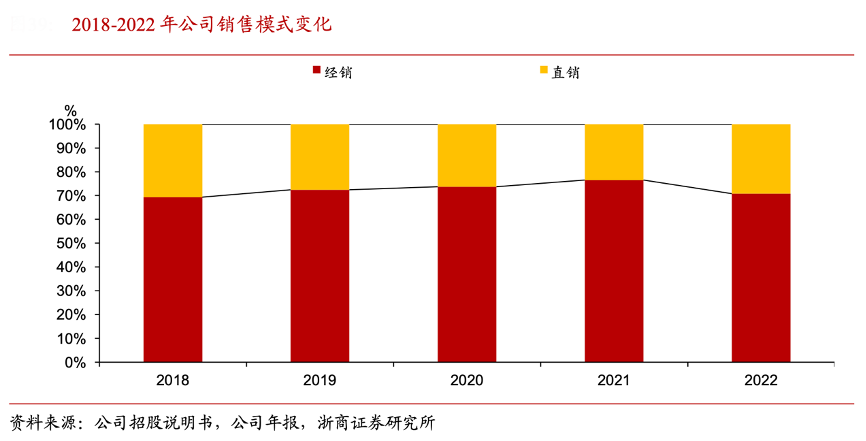 經典案例:根據公司招股說明書、公司年報、浙商證券研究所等綜合資訊表明,禾川科技公司采用“經銷為主,直銷為輔”的銷售模式,對普通客戶通過經銷商銷售產品,對部分采購量大、產品個性化要求較高的戰略客戶,則采取直銷模式。2018-2021年,公司實施行業聚焦戰略,通過經銷商渠道開拓鋰電、光伏等行業重要終端客戶,經銷比例持續上升。