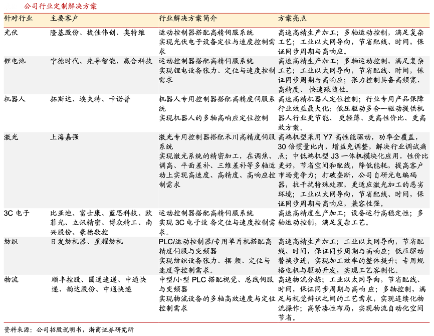 經(jīng)典案例:根據(jù)公司招股說明書、浙商證券研究所等綜合資訊表明,禾川科技發(fā)揮產(chǎn)品組合優(yōu)勢(shì),打造多場(chǎng)景解決方案。其充分發(fā)揮控制、驅(qū)動(dòng)、傳感、 機(jī)電一 體化等產(chǎn)品組合優(yōu)勢(shì),在光伏、鋰電、機(jī)器人、激光等多個(gè)行業(yè)擁有深入的個(gè)性化解決方案。