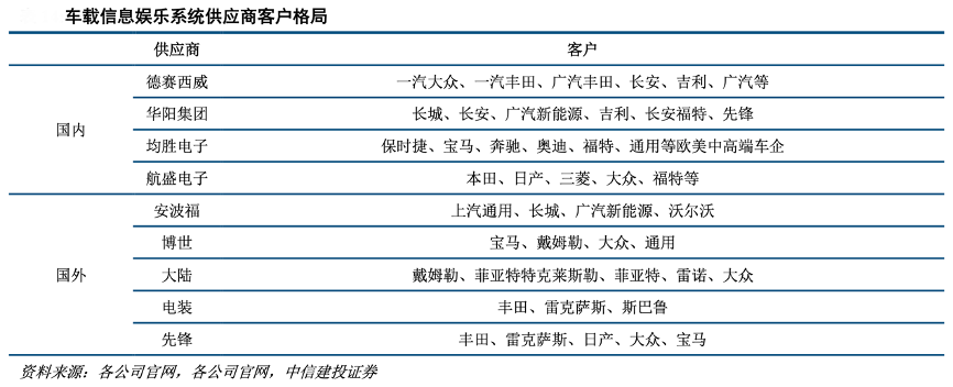 經(jīng)典案例:根據(jù)各公司官網(wǎng)、中信建投證券等綜合資訊表明,中控國內(nèi)格局“一超多強”,華陽屬于國內(nèi)第一梯隊。目前中控主機(jī)國內(nèi)競爭格局相對分散,根據(jù)高工智能數(shù)據(jù),2022 年 1-7 月國內(nèi)市場 CR7 約 66.25%,比亞迪市占率 17.33%排名第一,哈曼、德賽西威等市場份 額在 10%左右。