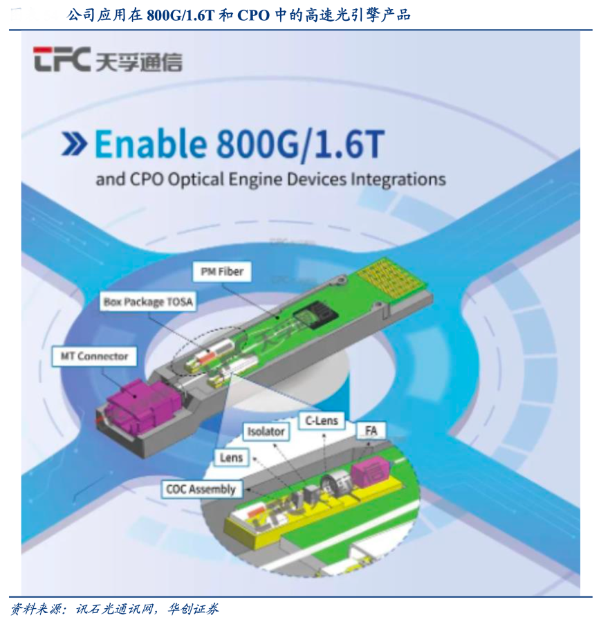 經典案例:根據訊石光通訊網、華創證券等綜合資訊表明,天孚通信公司光引擎項目在 2021 年獲得海外客戶首個億元訂單,并自 2022 年開始為客戶批量交付光引擎產品,目前量產產品已處于穩定批量交付狀態。
