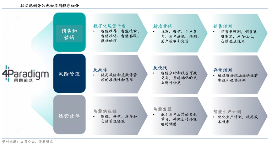 經典案例:根據公司公告、華泰研究等綜合資訊表明,第四范式于 2023 年 3 月推出專為業務場景設計的企業級生成式 AI 產品 SageGPT。SageGPT 具有多模態交互和企業級 AI 工具,它重新定義了最終用戶員工與業務系統交互的方式。