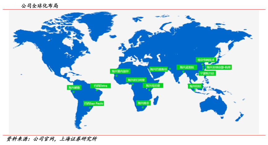 經(jīng)典案例:根據(jù)公司官網(wǎng)、上海證券研究所等綜合資訊表明,海興電力公司依托拉美、非洲、亞洲、中東、歐洲五大海外區(qū)域總部 構(gòu)建全球營銷網(wǎng)絡(luò),產(chǎn)品銷往全球 90 個多國家和地區(qū),其中一帶一路國家 46 個。