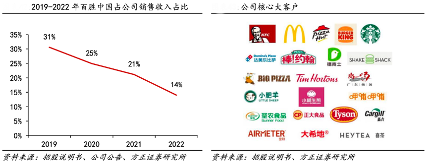 經(jīng)典案例:根據(jù)招股說明書、公司公告、方正證券研究所等綜合資訊表明,憑借與百勝合作多年積累的業(yè)內(nèi)經(jīng)驗與良好口碑,寶立食品公司進入其他餐飲連鎖企業(yè)供應鏈并開展全面合作,大型連鎖餐飲多使用定制產(chǎn)品,對供應商產(chǎn)品穩(wěn)定性、安全性有較高要求,切換成本高,留存率較高。