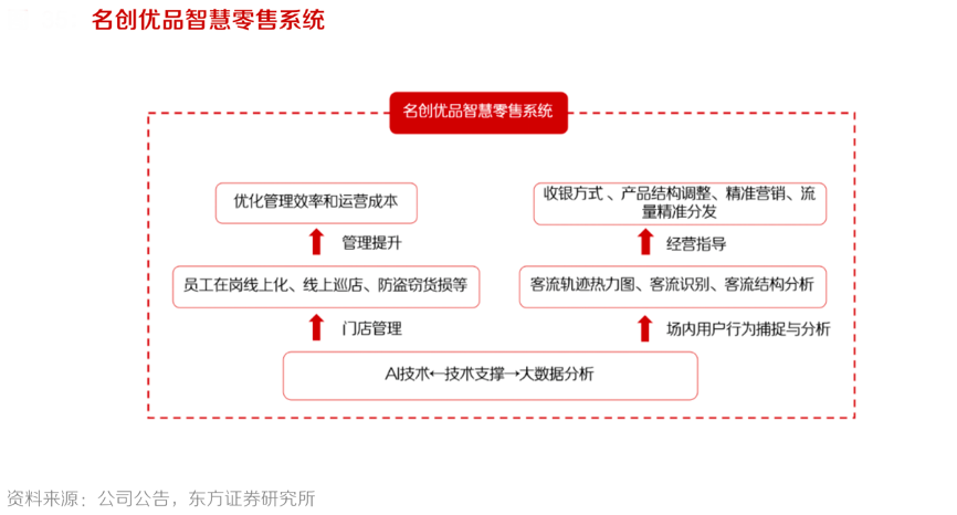 經(jīng)典案例:根據(jù)公司公告、東方證券研究所等綜合資訊表明,名創(chuàng)優(yōu)品各個門店基本覆蓋智慧門店系統(tǒng),基于對消費者店內(nèi)消費行為模式以及產(chǎn)品銷售趨勢的分析,決定各門店的產(chǎn)品組合,完成門店之間的合理分配,實現(xiàn)庫存風(fēng)險最小化。根據(jù) FY2020 數(shù)據(jù),國內(nèi)市場方面進(jìn)店客流量超過 4.16 億人次,約 30%消費者進(jìn)行購買行為。在用戶畫像方面,80%到店消費者年齡低于40歲,60%到店消費者年齡低于 30 歲,20-30 歲人群消費能力最強(qiáng),符合公司的核心客群定位。