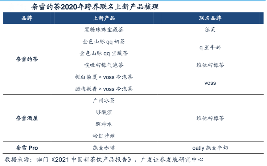 經(jīng)典案例:根據(jù)咖門《2021中國新茶飲產(chǎn)品報(bào)告》、廣發(fā)證券發(fā)展研究中心等綜合資訊表明,奈雪的茶近年來聯(lián)名跨界合作頻出,通過和人民日報(bào)、抖音、王者榮耀、李寧等不 同領(lǐng)域的機(jī)構(gòu)和公司以及各種美術(shù)展、藝術(shù)展的合作,組織線上和線下推廣活動(dòng),推出限量版茶飲、茶杯以及推出聯(lián)名新品等嘗試,加強(qiáng)在消費(fèi)者各類生活場景的滲透,傳達(dá)品牌形象和品牌文化。
