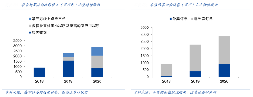 經典案例:根據奈雪的茶招股說明書、國盛證券研究所等綜合資訊表明,受到疫情影響及公司持續(xù)布局小程序等點單渠道,2020 年,奈雪的茶公司微信及支付寶小程序銷售收入占比為 41.2%,占比持續(xù)攀升,店內收銀占比為 30.4%,第三方線上點單平臺銷售收入占比為 41.2%(包括自提訂單)。2018-2020 年,奈雪門店外賣訂單銷售收入占比 由 7.5%逐步攀升至 31.9%。公司數字化發(fā)展下,信息系統(tǒng)能夠整合線上及線下交易信息,積累消費者數據,利用多渠道數據來針對性進行產品設計、營銷推廣。