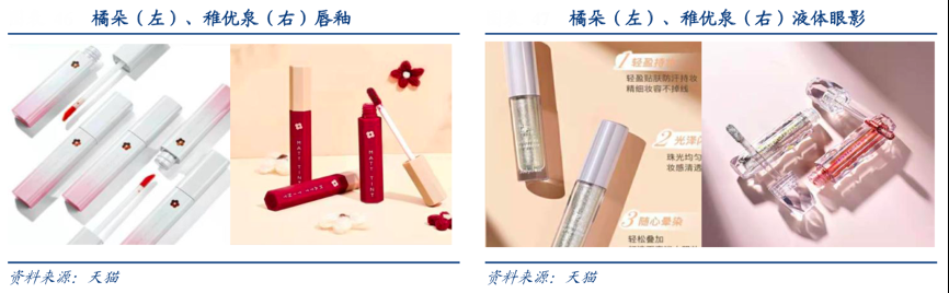 經(jīng)典案例:根據(jù)天貓、華創(chuàng)證券等綜合資訊表明,彩妝品牌定位與線上營(yíng)銷(xiāo)方法相似,品牌迭代快。稚優(yōu)泉和橘朵在品牌定位、定價(jià)和產(chǎn)品設(shè)計(jì)有許多相似之處。二者定價(jià)集中在百十元內(nèi),均聚焦于潮流彩妝,出新頻率高,產(chǎn)品包裝均呈現(xiàn)可愛(ài)少女風(fēng),均在眼影細(xì)分市場(chǎng)推出 液體眼影、單色眼影等相似單品。