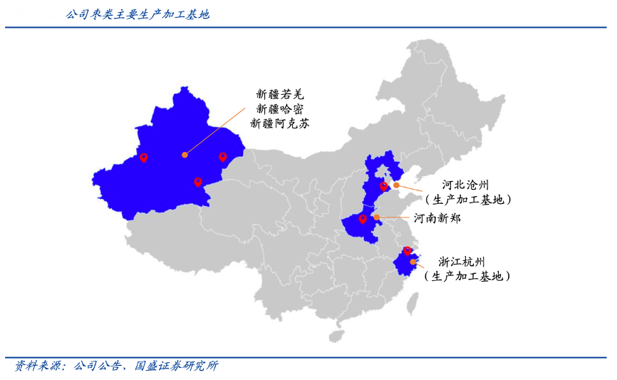 經(jīng)典案例:根據(jù)公司公告、國盛證券研究所等綜合資訊表明,好想你在全國主要紅棗產(chǎn)地設(shè)立了生產(chǎn)基地。目前其已在河南新鄭、河北滄州、新疆若羌、新疆阿克蘇等四地設(shè)立生產(chǎn)基地。好想你于 1996 年便進(jìn)入南疆,目前公司在南 疆直接經(jīng)營的棗類種植面積將近 1 萬畝,直接簽約農(nóng)戶 10 萬畝。