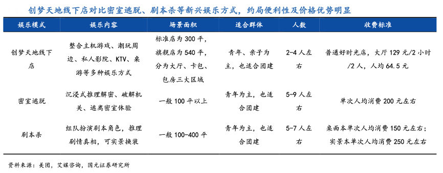 經(jīng)典案例:根據(jù)美團(tuán)、艾媒咨詢、國(guó)元證券研究所等綜合資訊表明,潮流零售商可在傳統(tǒng)的實(shí)體零售場(chǎng)景中融合多種社交場(chǎng)景,一方面以社交娛樂活動(dòng)吸引新消費(fèi)者到店,另一方面拓展收入,提高單店坪效。以創(chuàng)夢(mèng)天地為例,其線下店聚合主機(jī)游戲體驗(yàn)、影視 K 歌、潮玩手辦售賣等于一體,成為年輕人線下社交的一站式娛樂中心,能夠較好滿足新生代線下娛樂需求。