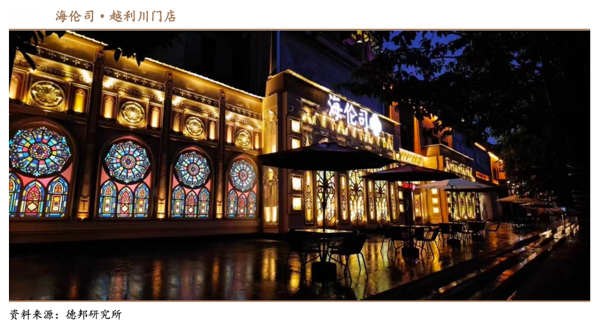 經典案例:根據德邦研究所等綜合資訊表明,海倫司試水“大排檔+小酒館”模式,2022 年 5 月 19 日,其于湖北省利川市開設第一家以“大排檔+小酒館”模式的“海倫司·越”門店。新模型引入燒烤大排檔元素,為海倫司與當地開放商合作打造的門店店型。