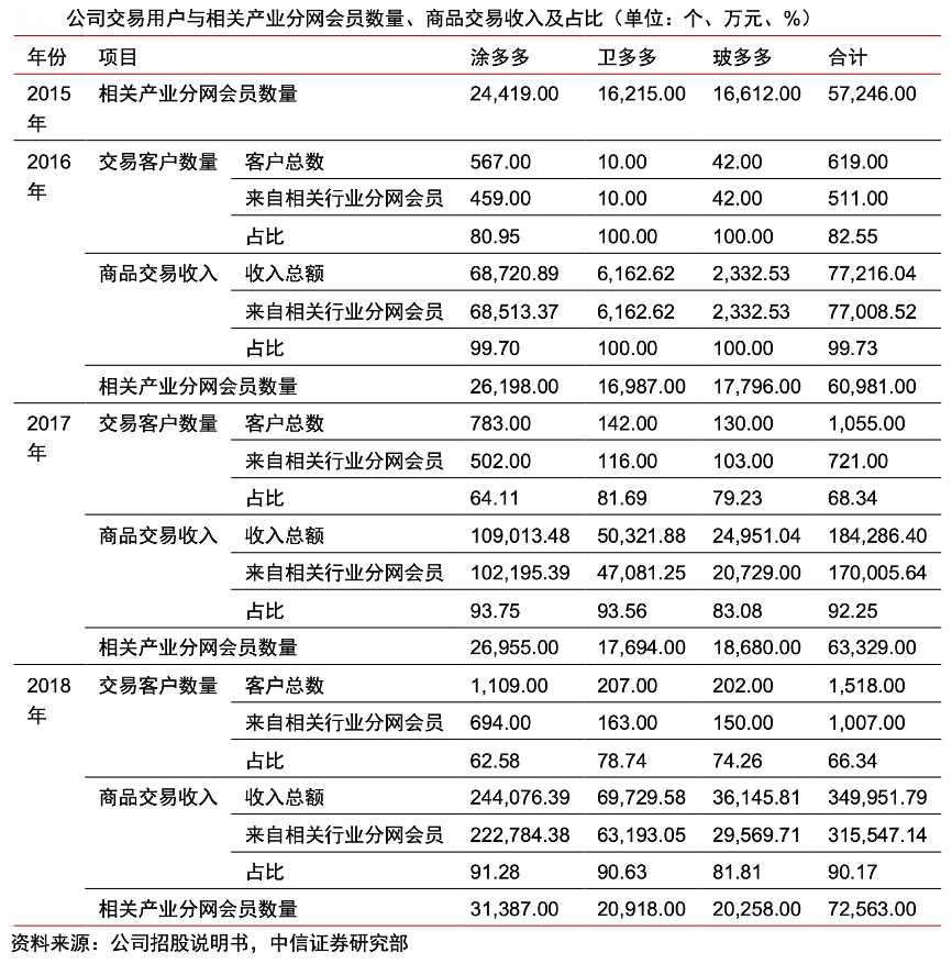 經(jīng)典案例:根據(jù)公司招股說明書、中信證券研究部等綜合資訊表明,國聯(lián)資源網(wǎng)歷經(jīng)十余年的發(fā)展,在垂直產業(yè)鏈積累了深厚的行業(yè)認知和上下游資源,錘煉了有深刻行業(yè)理解的團隊;多多電商受益于國聯(lián)資源網(wǎng)的用戶的有效轉化。在涂多多、衛(wèi)多多、玻多多發(fā)展初期,80%以上的客戶來自國聯(lián)資源網(wǎng)相關分網(wǎng),且這部分客戶的購買力更強,交易額高于平均水平。