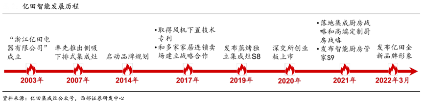 經(jīng)典案例:根據(jù)億田集成灶公眾號(hào)、西部證券研發(fā)中心等綜合資訊表明,浙江億田智能廚電股份有限公司創(chuàng)立于2003 年,專注于現(xiàn)代新型廚房電器產(chǎn)品的設(shè)計(jì)研發(fā)、生產(chǎn)和銷售。公司主要產(chǎn)品為集成灶,是國內(nèi)較早以自主品牌生產(chǎn)和銷售側(cè)吸下排式集成灶的企業(yè)之一。