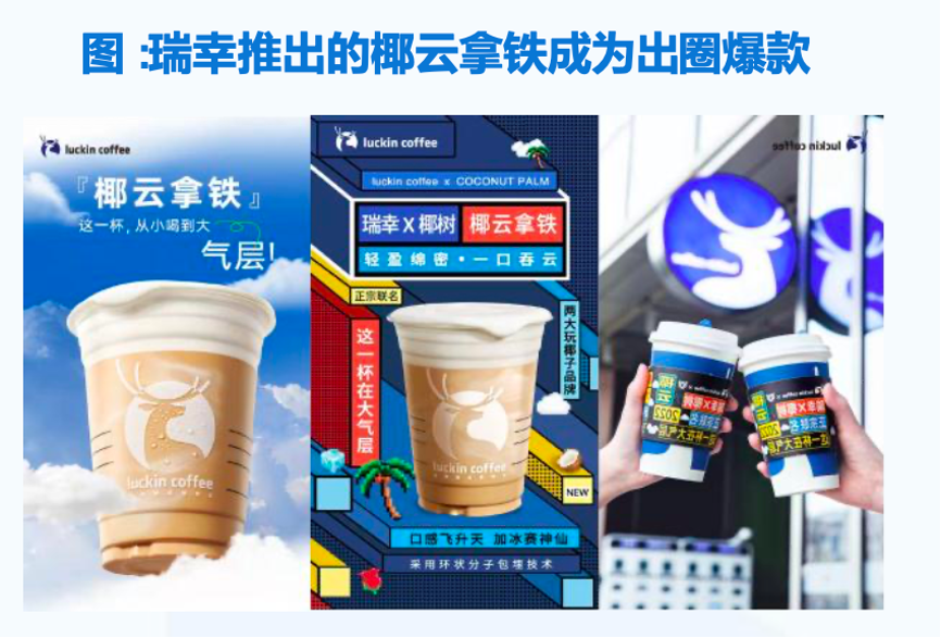 經(jīng)典案例:根據(jù)公司網(wǎng)站、國泰君安證券研究等綜合資訊表明,瑞幸咖啡在產(chǎn)品研發(fā)上建立了比較完善的數(shù)字化研發(fā)體系,將各種原料和口味數(shù)字化,量化追蹤飲品的流行趨勢。2022年第一季度其推出了34款鮮萃咖啡,其中與椰樹椰汁聯(lián)名推出的“椰云拿鐵”成為出圈爆款,在上市后的第一周售出超495萬杯。