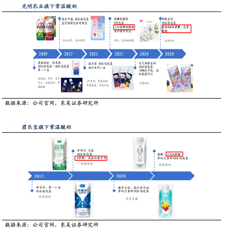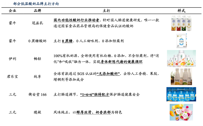 經(jīng)典案例:根據(jù)公司公告、新聞?wù)怼|吳證券研究所等綜合資訊表明,以往大多數(shù)消費(fèi)者并沒(méi)有意識(shí)到常溫酸奶與低溫酸奶在乳酸菌功能上的差異。因此,越來(lái)越多低溫酸奶品牌在宣傳上強(qiáng)調(diào)產(chǎn)品對(duì)腸道健康的作用,加強(qiáng)消費(fèi)者引導(dǎo)。同時(shí),低溫酸奶向口味豐富、無(wú)添加、個(gè)性化等方向演變,產(chǎn)品升級(jí)主打無(wú)添加、0糖等健康概念,煥發(fā)新的市場(chǎng)活力。