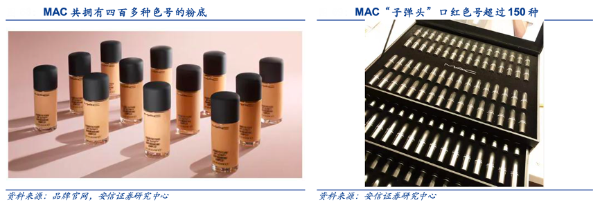 經典案例:根據品牌官網、安信證券研究中心等綜合資訊表明,MAC為滿足拉美消費者睫毛朝下的特定訴求,開發“Up For Everything”睫毛膏,該產品最終在墨西哥和智利銷量排名第一;擁有四百多種色號的粉底,以滿足全球消費者不同的膚質和膚色。