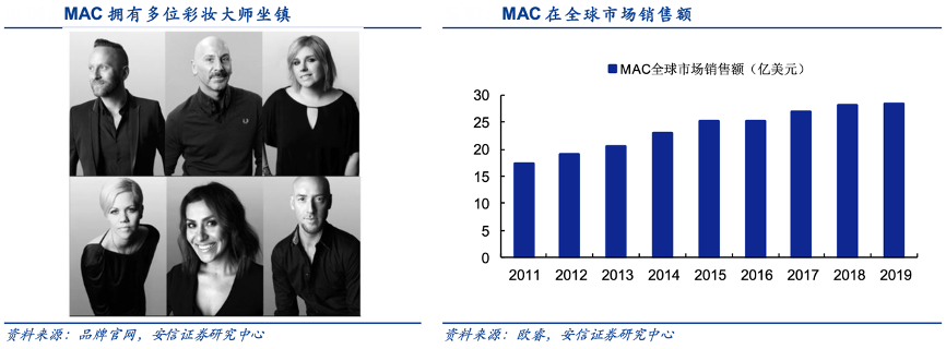 經典案例:根據國家藥品監督管理局、安信證券研究中心等綜合資訊表明,MAC品牌創立之初,其目標人群是化妝師、模特、攝影師、造型師,隨著給雜志贊助的大獲成功,MAC的銷售遍布 120 多個國家,累計推出超過7000 個 sku,全球范圍內平均每秒鐘售出一支口紅,每三秒售出一盤眼影,長期穩居全球彩妝市場市占率第三的位置。