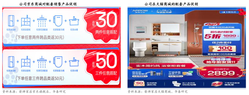 經典案例:根據箭牌家居京東旗艦店、箭牌家居天貓商城、華泰研究等綜合資訊表明,箭牌家居在京東商城,箭牌家居的套系產品主打衛浴套系,衛浴套裝主要包括坐便器、花灑和洗手 盆柜中的不同組合,目前主要供有 4 款套系化產品。