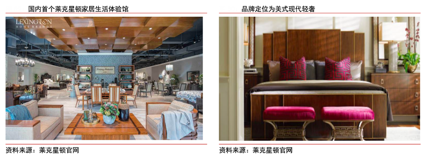 經典案例:根據萊克星頓官網、中信證券研究部等綜合資訊表明,萊克星頓是高端美式風格家具領域的百年品牌,于 2017 年被公司收購后整合全球供應鏈資源,在美國北卡羅萊納州和中國上海均有倉庫,可保證全球范圍的快速供貨。截至 2021 年底品牌在中國一線城市擁有 23 家實體店鋪,與多家軟裝設計行業龍頭企業簽署全面戰略合作協議,共同打造中高端樓盤的軟裝樣板間。