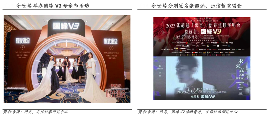 經典案例:根據網易、國緣V9清雅醬香、安信證券研究中心等綜合資訊表明,今世緣母親節期間,國緣 V3 舉辦了母親節主題“時光酒會”,在戶外 LED 大屏點亮母親節主 KV 海報、發起“陪伴她一小時”公益行動、在省內核心商圈 發放母親節“康乃馨”禮物。同時在抖音發起“時光美人 V 愛綻放”挑戰賽,總播放量超 1.6 億,參與人數高達 1.8 萬。