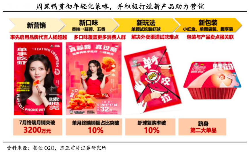 經典案例:根據餐飲O2O、東亞前海證券研究所等綜合資訊表明,2022年周黑鴨 啟用楊超越為品牌形象代言人,貫徹年輕化營銷策略,并成立“內容推廣 中心”,借助抖音、小紅書等短視頻、直播平臺,豐富內容營銷矩陣,幫助在新世代消費者群體中建立年輕時尚的品牌形象。