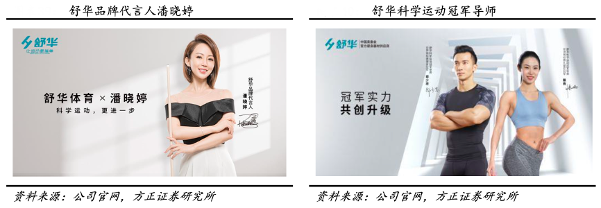經典案例:根據公司官網、方正證券研究所等綜合資訊表明,舒華簽約品牌代言人,利用新媒體平臺矩陣式推廣。2022 年,公司簽約九球天后潘曉婷作為品牌代言人,聘請健美健身世界冠軍鄭少忠、亞洲冠軍滕雨作為舒華科學運動冠軍導師,并簽約中國環法騎行第一人計成成為舒華品牌車類產品推薦官,通過運動明星致力于創新科學運動解決方案。