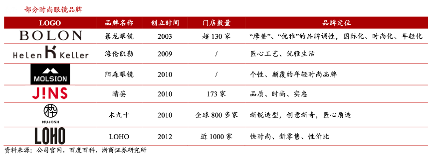 經(jīng)典案例:根據(jù)公司官網(wǎng)、百度百科、浙商證券研究所等綜合資訊表明,眼鏡兼具裝飾屬性,時(shí)尚品牌紛紛入局。目前定位于時(shí)尚的眼鏡品牌較多,既有強(qiáng)調(diào)“品質(zhì)”、“優(yōu)雅”的高端時(shí)尚品牌暴龍眼鏡、海倫凱勒等,也有迎合年輕人個(gè)性潮流品味的快時(shí)尚品牌木九十、LOHO 等。時(shí)尚品牌的定位更加呈現(xiàn)多元化與差異化求。