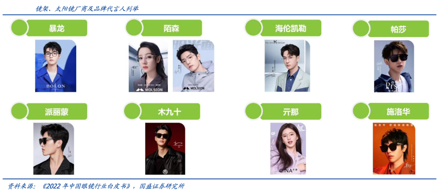 經典案例:根據《2022中國眼鏡行業藍皮書》、國盛證券研究所等綜合資訊表明,太陽鏡除防止太陽強光及紫外線刺激以外,更是作為體現個人時尚品味的配飾,博士眼鏡公司與意大利著名的國際性高端眼鏡產品設計、生產和經銷商霞 飛諾集團合作,帶來多品牌的太陽鏡產品體系,2017-2021 公司太陽鏡銷量從 9.9 萬副增長至 18.6 萬副。