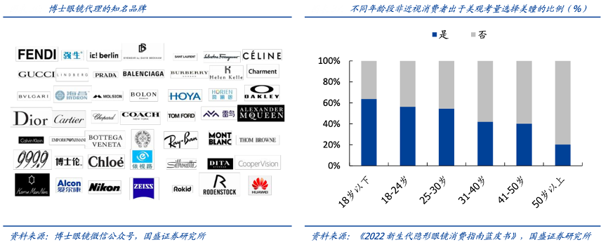 經典案例:根據博士眼鏡微信公眾號、《2022新生代隱形眼鏡消費指南藍皮書》、國盛證券研究所等綜合資訊表明,博士眼鏡公司與眾多國際知名奢侈品牌和本土時尚品牌合作,推出適合不同年齡段和不同使用場景的潮流太陽鏡。此外,隨著隱形眼鏡逐漸進入潮流彩妝板塊,公司積極發力美瞳與隱形眼鏡市場,與多個國內外美妝隱形眼鏡品牌及代理商進行深度合作,拓寬時尚美妝產品矩陣。