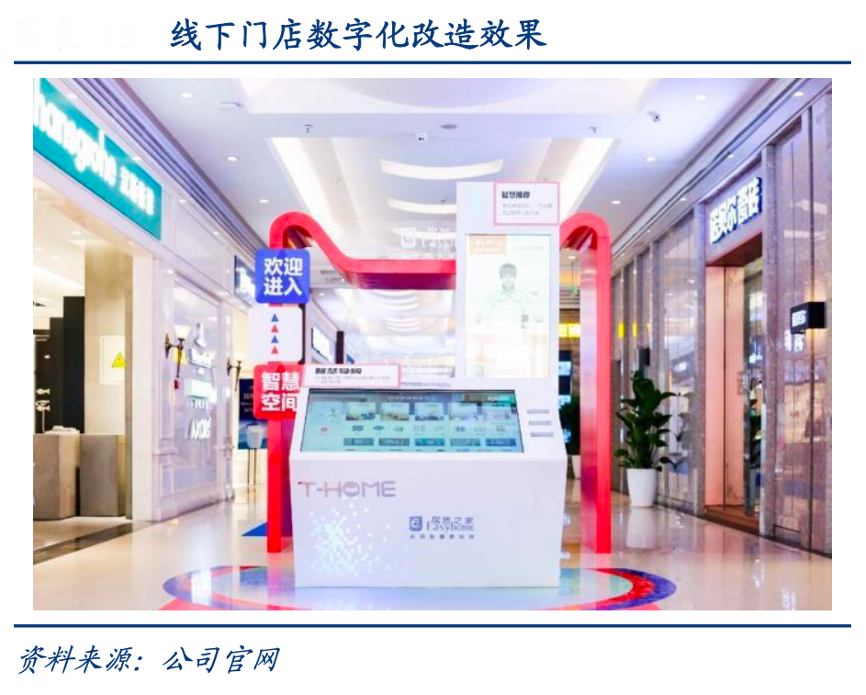 經典案例:根據公司官網、華創證券等綜合資訊表明,居然之家同阿里巴巴開展合作,引入阿里新零售 POS 系統構建商品與交易數字化平臺,實現線上線下融合。對線下門店實施數字化改造,實現賣場商品與交易數據的互聯互通和數字化運營管理,運用數字化工具改 造賣場訂單和收銀系統,賦能 B 端商戶。