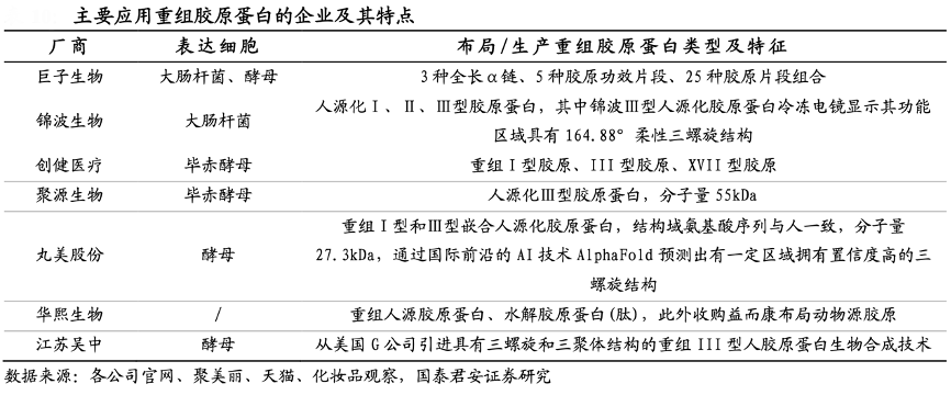 經典案例:根據各公司官網、聚美麗、天貓、化妝品觀察和國泰君安證券研究等綜合資訊表明, 2022 年 11 月頭部膠原蛋白企業巨子生物成功上市,同時 錦波生物謀求 IPO、創建醫療被資生堂的資悅基金進行投資,行業資本化進程加速,也引來更多關注與市場參與者。此外,丸美、溯華等護膚品牌也通過與高校、機構合作等方式推出主打膠原蛋白的產品,共同推動這一成分熱度攀升。