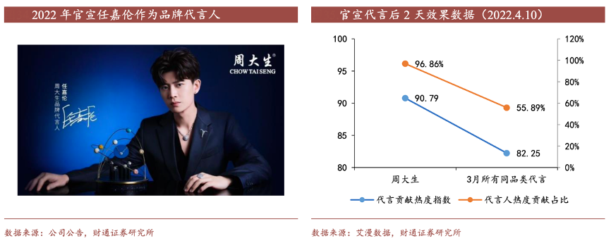 經(jīng)典案例:根據(jù)公司公告、艾漫數(shù)據(jù)、財通證券研究所等綜合資訊表明,周大生品牌建設和推廣方面,其優(yōu)選品牌代言人,不斷提升潮流時尚度,深受年輕消費者喜愛;通過在機場、高鐵、互聯(lián)網(wǎng)、新媒體各類媒介投放廣告,構建了全方位、立體式品牌整合營銷戰(zhàn)略;推進數(shù)字化戰(zhàn)略,重視電商等數(shù)字化營銷新業(yè)態(tài),并賦能終端門店銷售。