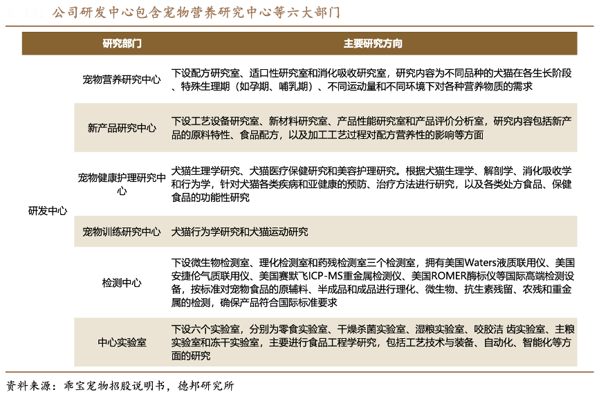 經典案例:根據乖寶寵物招股說明書、德邦研究所等綜合資訊表明,乖寶公司研發中心成立于 2008 年,22H1 公司研發機構共有專職研發技術人員 77 人,其中核心技術人員 3 人,十年以上工作經驗的專業人士 23 人。目前公司研發中心已和國內外多家科研院所建立緊密的合作關系,并聘請食品和寵物食品領域多位國際專家擔任技術顧問。