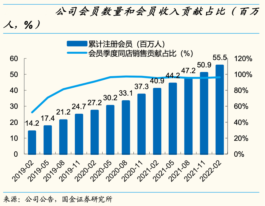 經典案例:根據公司公告、國金證券研究所等綜合資訊表明,截至 2022 年 2 月,滔搏公司會員人數突破 5550 萬人,單季度會員貢獻店內超過 96.4% 的零售總額,且 30%的會員曾消費 2 個及以上品牌。通過對數千萬會員持續有效的運營和服務,滔搏早已超越品牌銷售中間商的角色,逐漸發展成為國內最大的運動服務平臺之一。