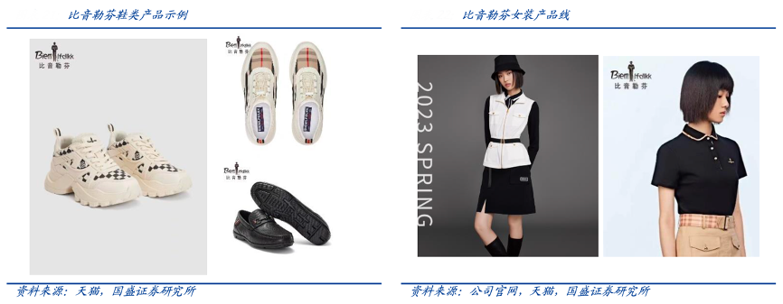 經(jīng)典案例:根據(jù)公司官網(wǎng)、天貓、國盛證券研究所等綜合資訊表明,比音勒芬針對核心客群的消費(fèi)習(xí)慣,拓展并豐富鞋類品類,針對客群消費(fèi)習(xí)慣,公司推出鞋類產(chǎn)品并與服裝成套搭配售賣,為消費(fèi)者提供一站式、全面的服飾消費(fèi) 選擇方案。例如打造 X-STATIC 銀纖維抗菌防臭科技鞋履,兼具舒適性與搭配實(shí)穿性。同時拓展女性消費(fèi)人群,推出相似調(diào)性和風(fēng)格的女裝產(chǎn)品,有效實(shí)現(xiàn)客群的拓展。