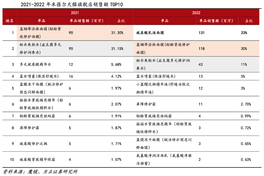 經典案例:根據魔鏡、方正證券研究院等綜合資訊表明,米蓓爾定位于高景氣敏感肌賽道,產品全面提供多樣化選擇。品牌專注于解決敏感肌膚問題,根據米蓓爾天貓旗艦店,截至目前,米蓓爾的四大系列產品主要包括:屏障修護系列、輕齡緊致系列、舒緩修護系列、多元修護系列,覆蓋消費者分層次需求。