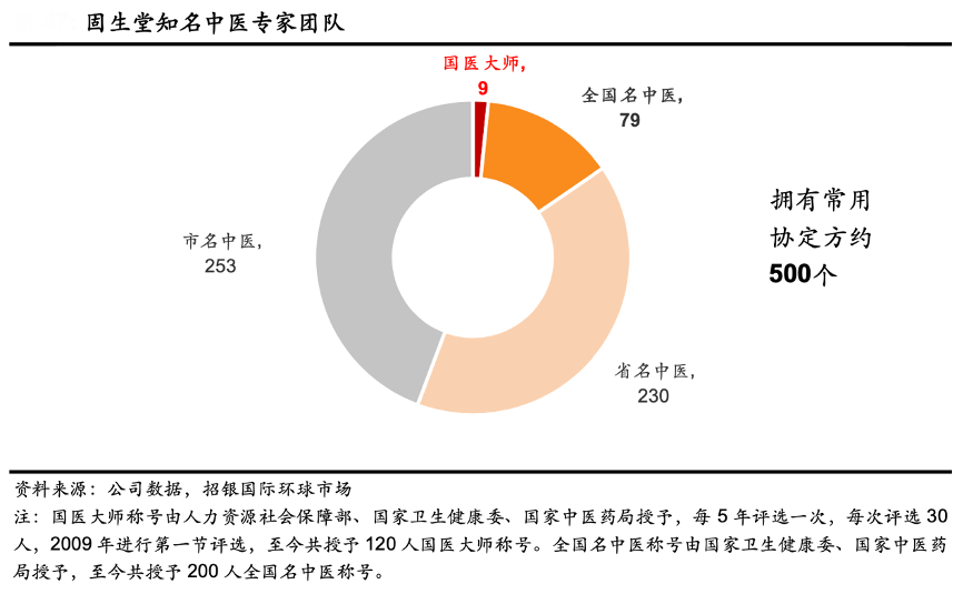 經典案例:根據公司數據、招銀國際環球市場等綜合資訊表明,醫療機構的中藥制劑大多來自本院名老中醫的協定方,是名老中醫學術思想和多年診療經驗的智慧結晶。截至2023 年 6 月底,固生堂合作的名中醫達到 571 位,其中包括 9 位國醫大師和 79 位全國名中醫。