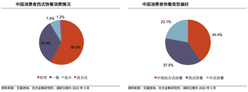 經典案例:根據艾媒咨詢、光大證券研究所等綜合資訊表明,從消費習慣上看,國內消費者更偏好中西結合式快餐,有40.4%的受訪消費者選擇,37.5%的消費者表示更喜愛西式快餐。西式快餐以及其本土化改良的菜品 均受到市場歡迎,西式快餐的本土化發展潛力大。中式漢堡(以手搟現烤餅胚,搭配傳統中餐餡料制成)為西式快餐本土化的代表,近年來異軍突起。以塔斯汀為例,門店數從 22 年 9 月的近 2000 家店快速增長 至 23 年 8 月的 5000+家店。