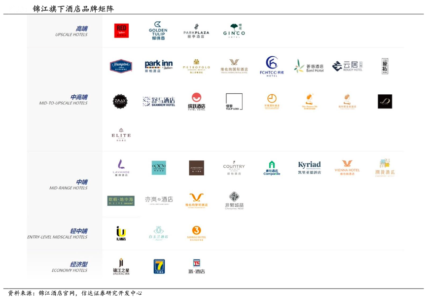 經典案例:根據環球旅訊、錦江酒店官網、錦江酒店公司公告、信達證券研究開發中心等綜合資訊表明,錦江通過多次收購,吸納了眾多酒店品牌,從經濟型到高端各細分檔次均有多個知名品牌,在不同的城市層級中形成了有梯度的價格體系。