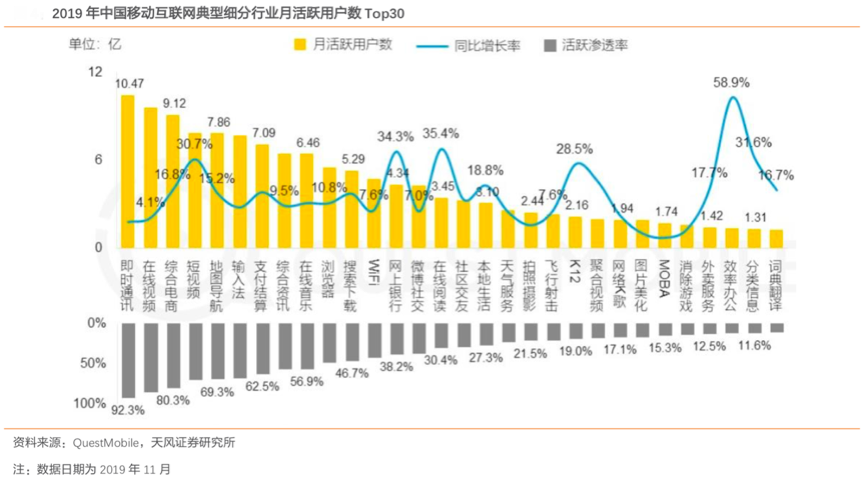 根據QuestMobile、天風證券研究所等綜合資訊表明,2019 年 11 月國內移動電商行業月活躍用戶達 9.12 億,同比增長 16.8%,對應移動端用戶的月活躍滲透率達 80.3%,僅次于即時通訊與在線視頻。用戶增長的天花板隱約可見,我們已經進入了“存量競爭時代”,用戶精細化運營時代到來。