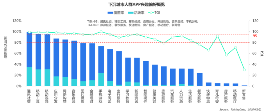 根據(jù)TalkingData等綜合資訊表明,,下沉城市人群對(duì)快手等短視頻軟件比較看重,刷視頻、玩游戲等成為三四線(xiàn)下沉城市人群的日常活動(dòng),其往往線(xiàn)上生活?yuàn)蕵?lè)屬性強(qiáng),對(duì)移動(dòng)視頻、游戲類(lèi)應(yīng)用等比較關(guān)注,而對(duì)旅游和餐飲服務(wù)類(lèi)應(yīng)用重視度一般。