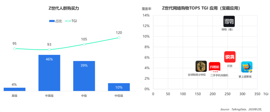 根據TalkingData等綜合資訊表明,Z世代網絡購物的應用主要集中在得物(毒)、識貨、掌上道聚城等應用方面,其多數集中在游戲、二手貨等垂直領域,有自己的專屬人群,也有其關注內容,“重度垂直人群”的應用更受歡迎。年輕的Z世代并沒有太高的消費能力,但在自身興趣(電子產品、潮鞋、游戲道具等)上舍得花錢,這也催生了一批垂直購物的“寶藏應用”。
