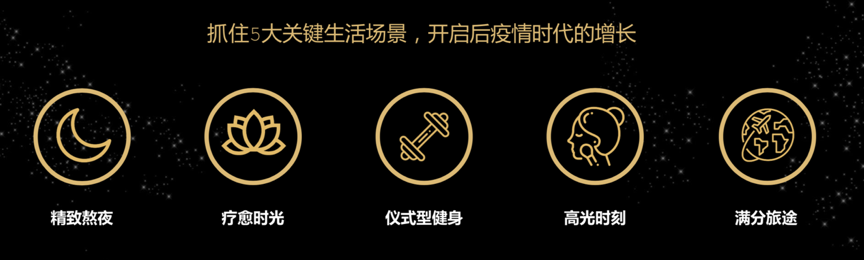 對于用戶來說,“健康商品&健康消費”就是點亮“五大關鍵生活場景”,精致熬夜、療愈時光、儀式型健身、高光時刻和滿分旅途等生活場景處處可見,以美容化妝品、家庭清潔品、個人護理品等分品類、分檔次、分套裝滿足,提供一站式多品類集合裝,提供分階段周期裝,也可提供“主題促銷活動周”等,以此亮化“五大生活場景”,激活快消品的健康消費。