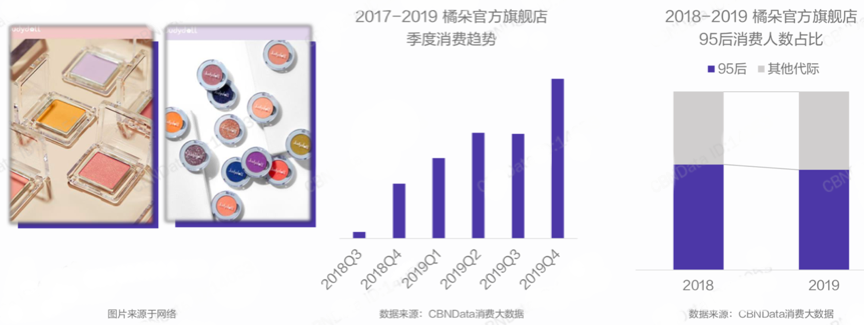 下沉市場(chǎng)的用戶消費(fèi)帶有“跟風(fēng)”“跟隨”的特色,隨風(fēng)而動(dòng),迎風(fēng)飄揚(yáng)。根據(jù)CBNData《2019中國(guó)互聯(lián)網(wǎng)消費(fèi)生態(tài)大數(shù)據(jù)報(bào)告》等綜合資訊表明,愛(ài)嘗鮮的95后更容易被新品牌吸引,成為第一波“先吃螃蟹”的人;以橘朵為例,通過(guò)推出“單色”系列產(chǎn)品,用高性價(jià) 比吸引到了第一批95后學(xué)生黨、化妝小白等群體,而后95后“自來(lái)水”帶動(dòng)其他代際的消費(fèi)者跟風(fēng)消費(fèi)。