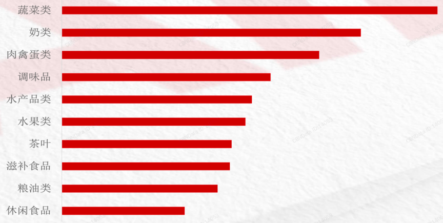 同時,平臺中的農(nóng)產(chǎn)品品類銷售額增速TOP10分別為蔬菜、奶類、肉禽蛋、調(diào)味品、水產(chǎn)品、水果、茶葉、滋補食品、糧油、休閑食品,基礎(chǔ)性農(nóng)產(chǎn)品消費仍然占據(jù)主流,以茶葉、滋補食品等代表的可選農(nóng)產(chǎn)品消費(品質(zhì)類農(nóng)產(chǎn)品消費)仍有較大的增長空間。
